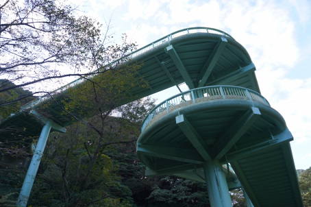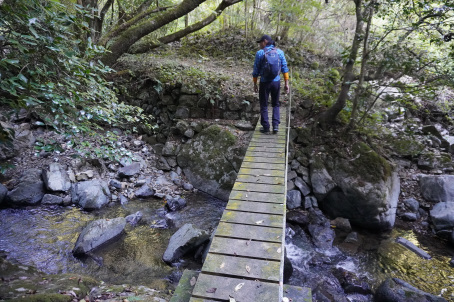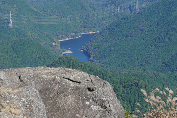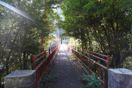![]() 鱒淵貯水池に架かる吊り橋を左に通過 |