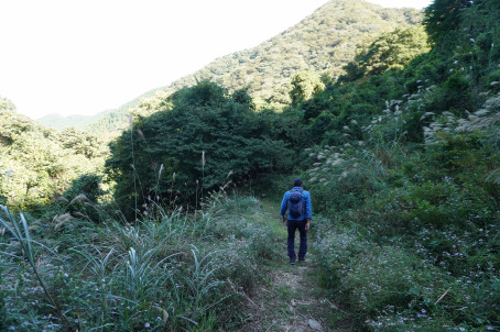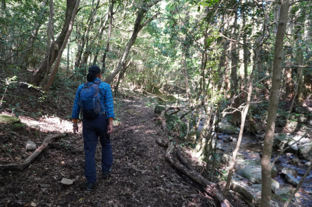 ![]() 分岐を右に折れ七重の滝方向に進む。 |