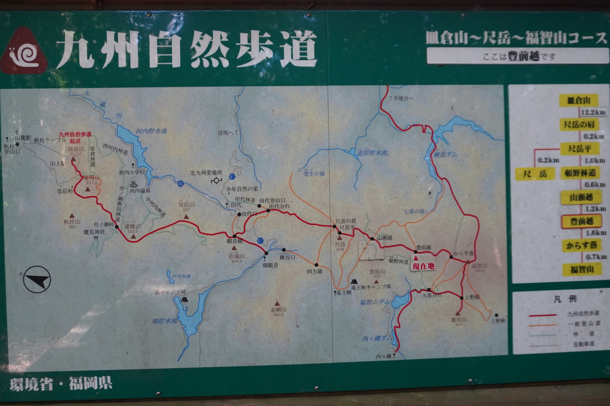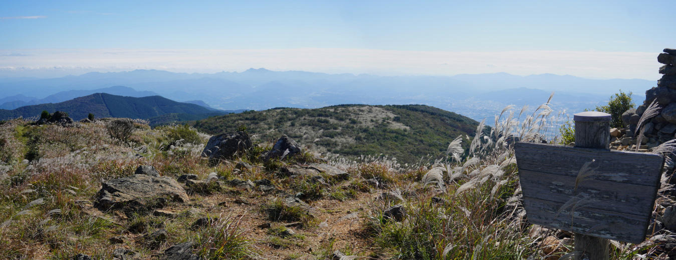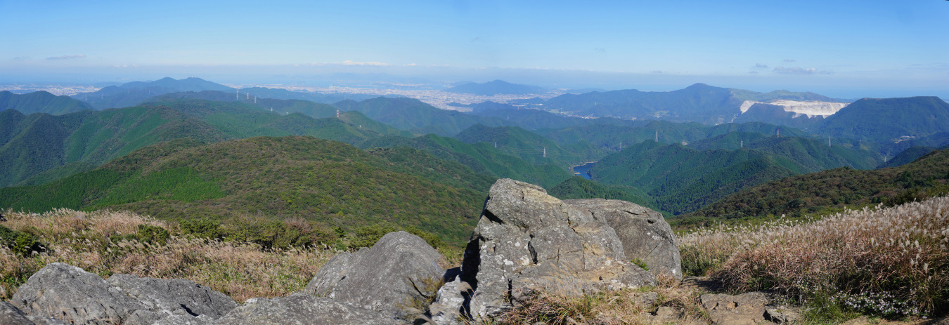 ![]() 山頂北東側には貫山・平尾台が見える。 |