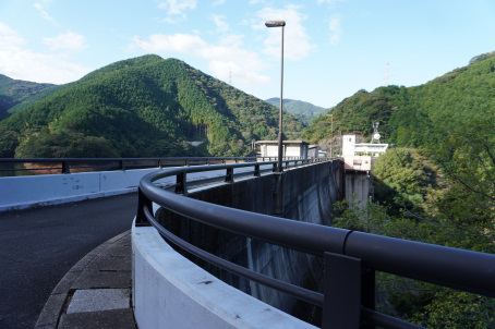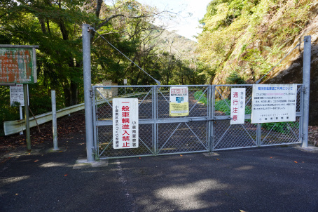 ![]() 鱒淵ダムより出発した駐車場を見下ろす。 |