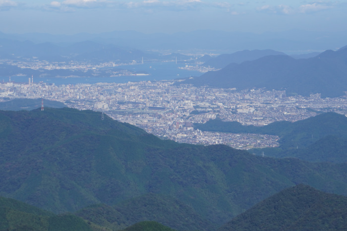 ![]() 小倉市街地の先には関門海峡・関門橋が見える。 |