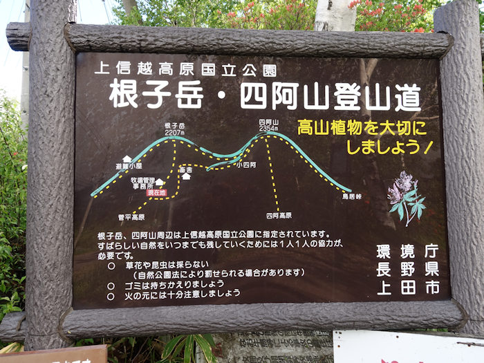 ![]() しばらく舗装道を歩き出発点の根子岳登山口に帰着する。 |
