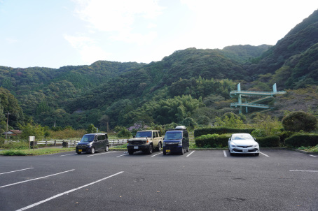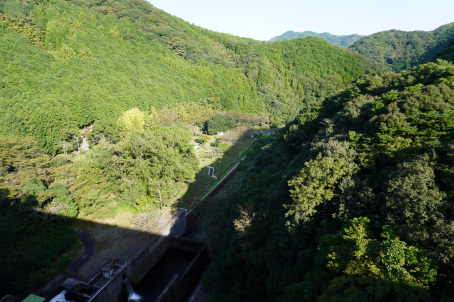 ![]() 鱒淵ダムより出発した駐車場を見下ろす。 |