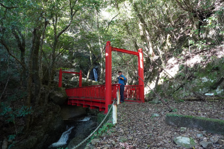![]() 鱒淵貯水池に架かる吊り橋を左に通過 |