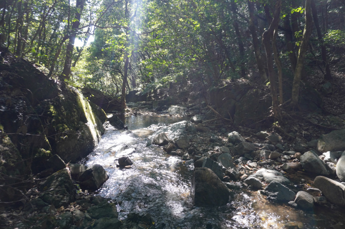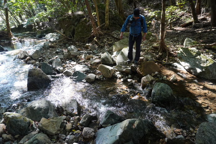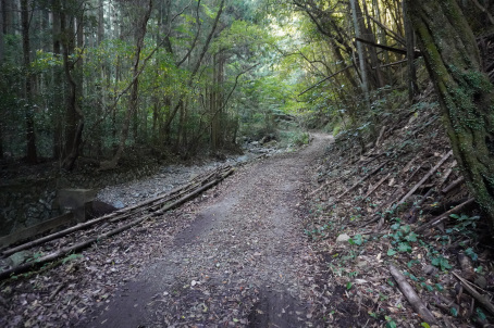 ![]() 分岐を右に折れ七重の滝方向に進む。 |