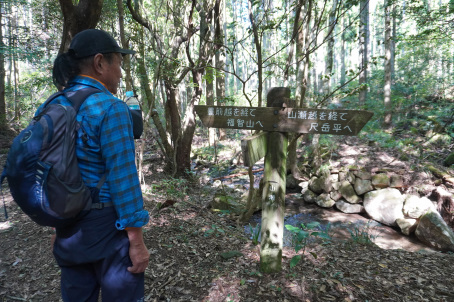 ![]() 山瀬に達する。右に進めば尺岳に至る。 |