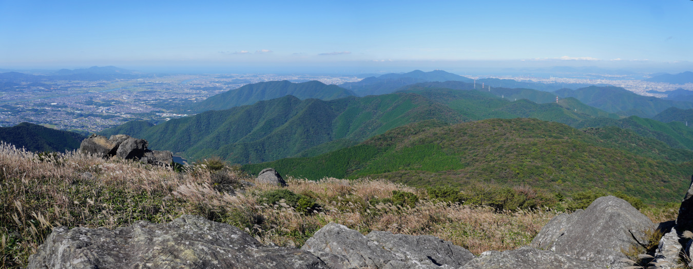 ![]() 山頂北東側には貫山・平尾台が見える。 |