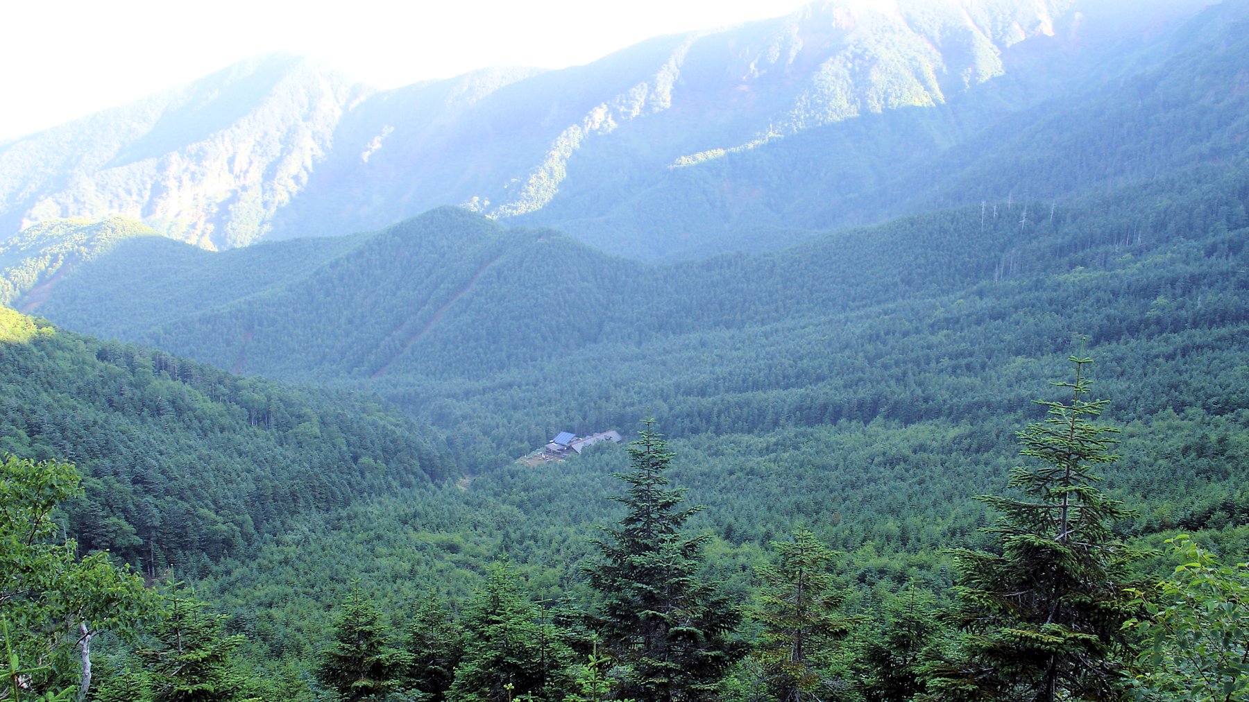 ● 赤岳への登山道から行者小屋を振り返る。 (2007.1.14撮影)